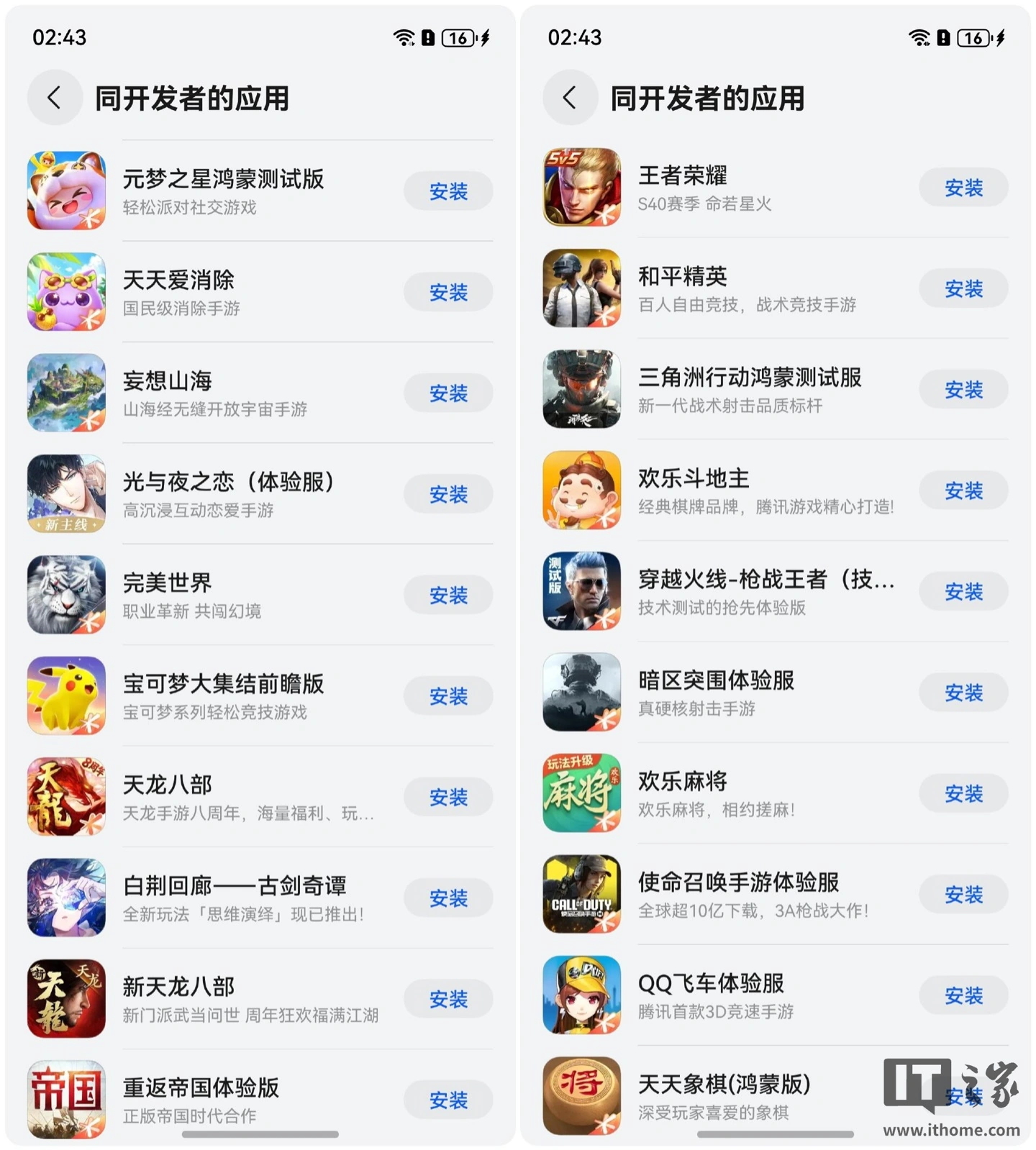 进入 2025 年后,腾讯游戏持续发力鸿蒙化。半年前,《王者荣耀》和《和平精英》正式服已率先上架鸿蒙应用市场,并均取得了超百万的下载量。而更早之前,鸿蒙已经迎来了一大波腾讯系游戏的集中适配。包括热门竞速休闲游戏《QQ 飞车》、高沉浸互动恋爱手游《光与夜之恋》,以及射击类大热游戏《使命召唤手游》均已上线鸿蒙体验服。此外,《金铲铲之战》、《英雄联盟手游》、《元梦之星》等多款人气手游也纷纷开启了预约,进一步丰富了鸿蒙平台的游戏内容。